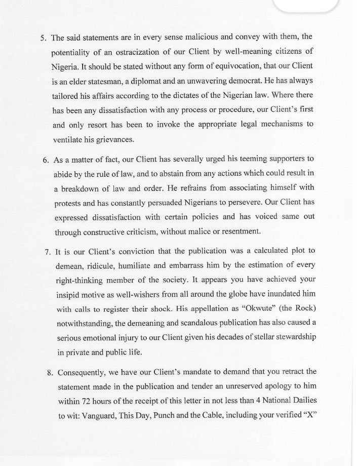 *Demands N5bn compensation for alleged defamation