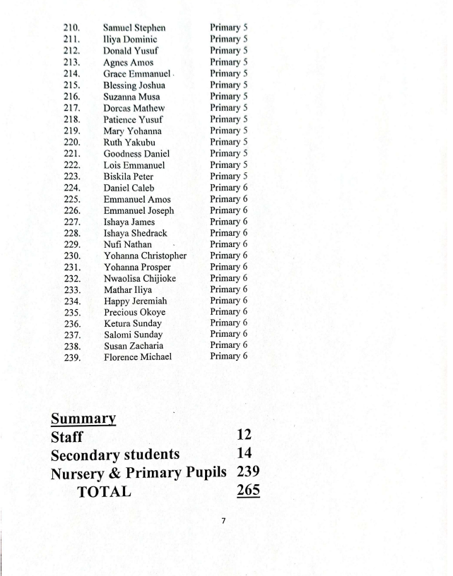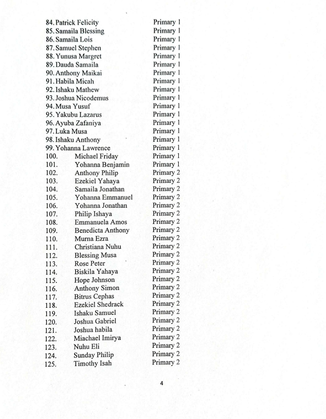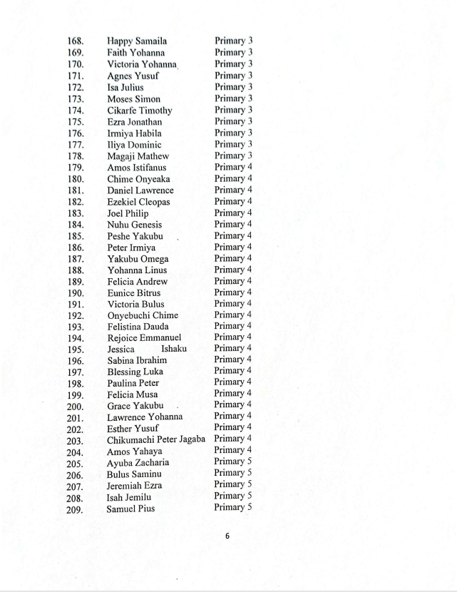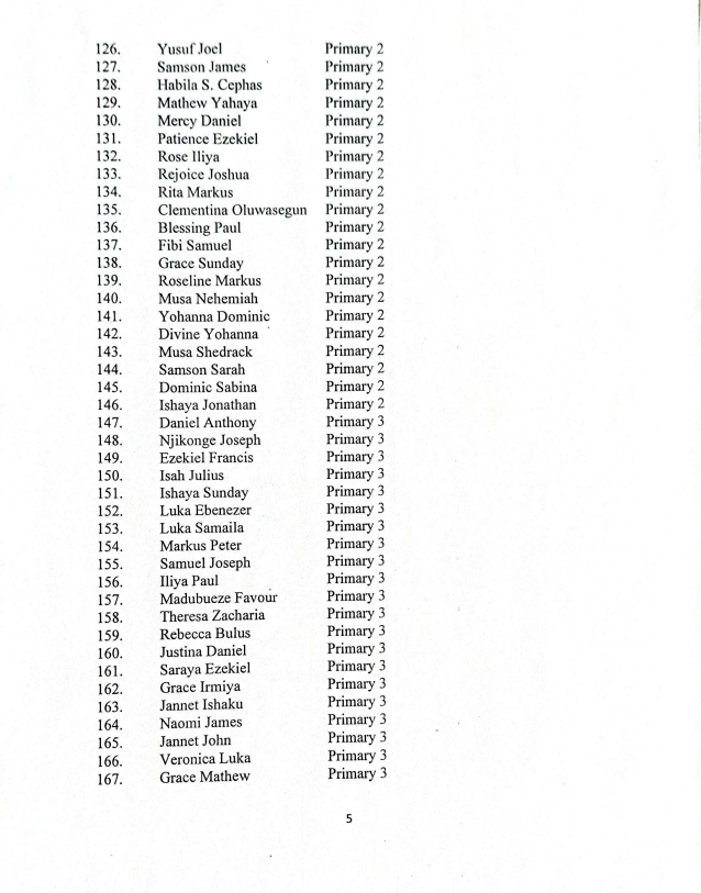 Here is the full list of the St. Mary’s Catholic School students still in captivity:
