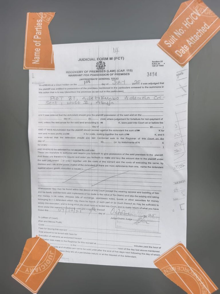 The Court also ordered the defendants to immediately give vacant possession of the property at Plot 81, Ademola Adetokunbo Crescent, Wuse II, Abuja to the claimants.
