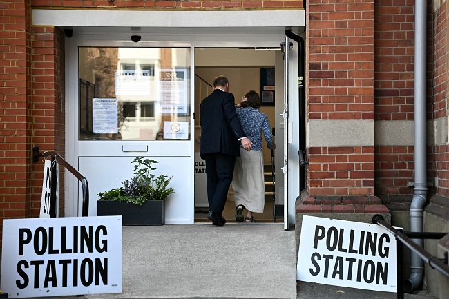 Prime Minister Rishi Sunak was the first leader to cast his vote at a polling station in Northallerton, North Yorkshire, with his wife, Akshata Murty.